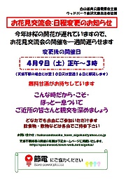 今年は桜の開花が遅いため、お花見交流会を下記日程に変更させていただきます。