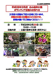 日時 : 3月20日(日) 10:00〜11:00 (雨天中止)
