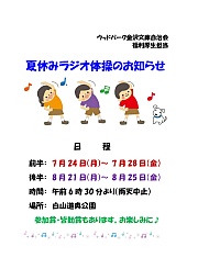 自治会のラジオ体操が公園広場で開催されます。(7/24)
