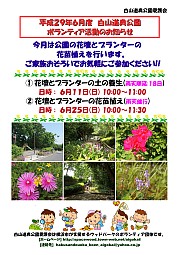 今月は花壇とプランターの土の養生と花苗植えを行いますので、活動は2回行います。